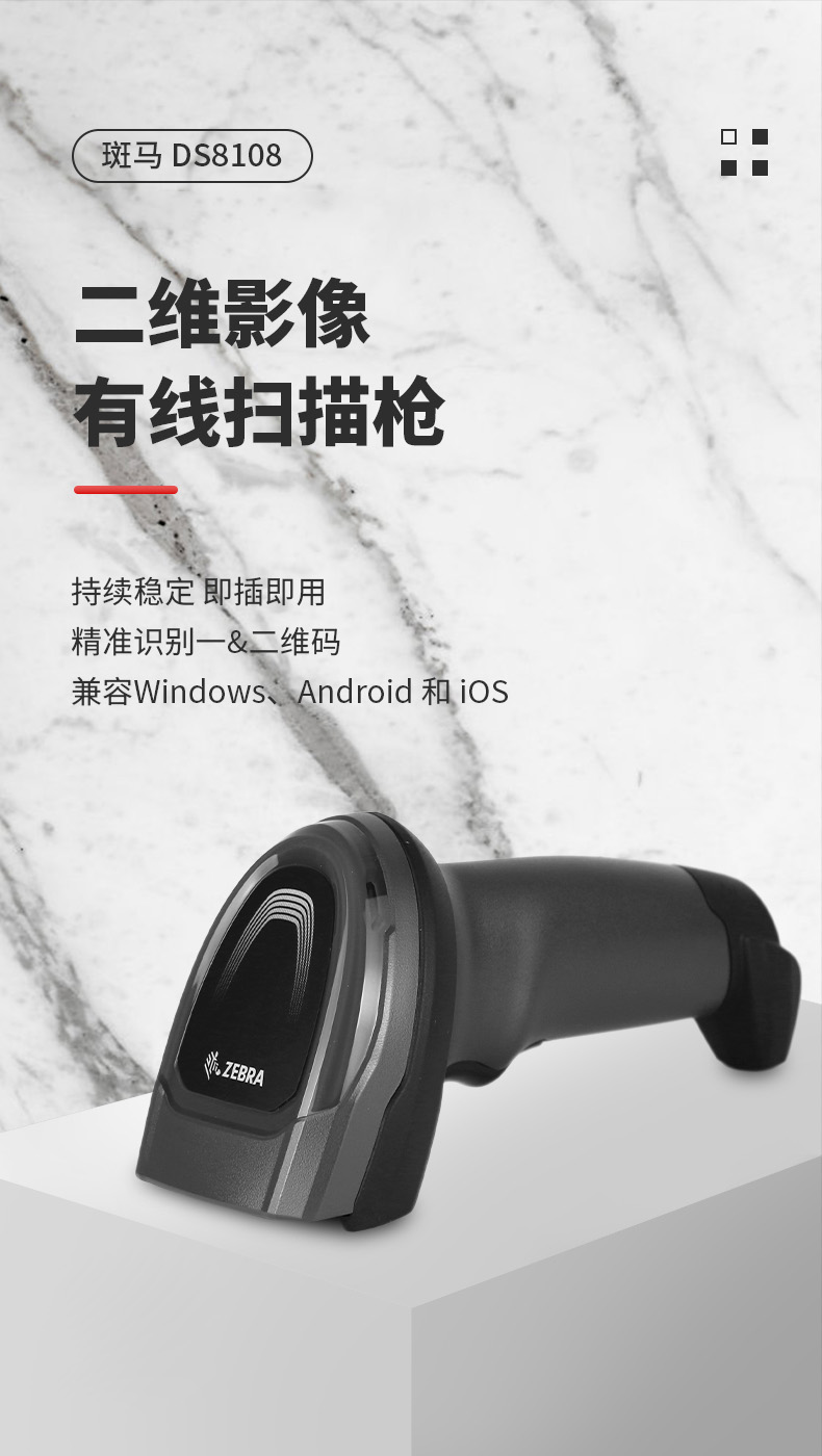 斑馬(ZEBRA)DS8108 手持條碼槍掃描槍掃碼槍 symbol掃描器二維掃描 巴槍 DS8108-SR