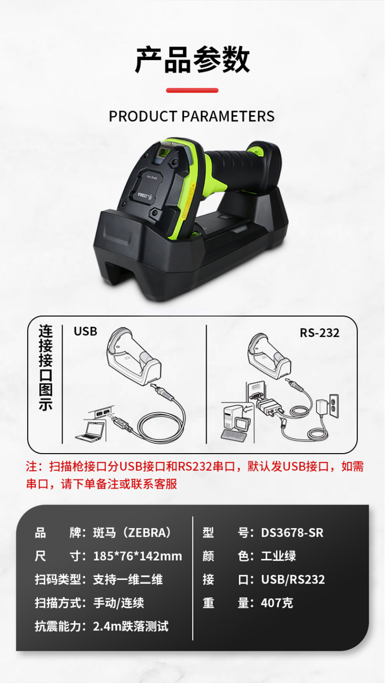• 商品名稱:斑馬(ZEBRA)DS3678 手持一維工業(yè)條碼掃碼槍 掃碼器 掃描槍 巴槍 DS3678-SR(標(biāo)配)