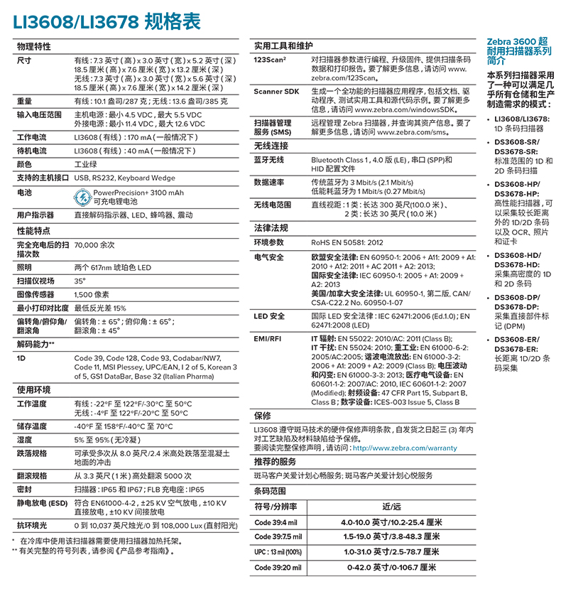 • 商品名稱:斑馬(ZEBRA)LI3678 手持一維條碼掃碼槍 掃碼器掃描槍巴槍 LI3678-SR工業(yè)級(jí)無(wú)線一維