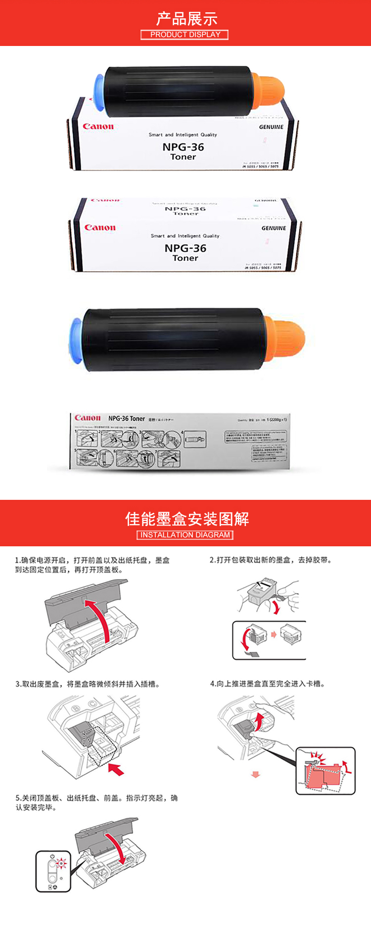 • 商品名稱:佳能 NPG-36 碳粉 一支 適用iR5055/5065/5075機(jī)型