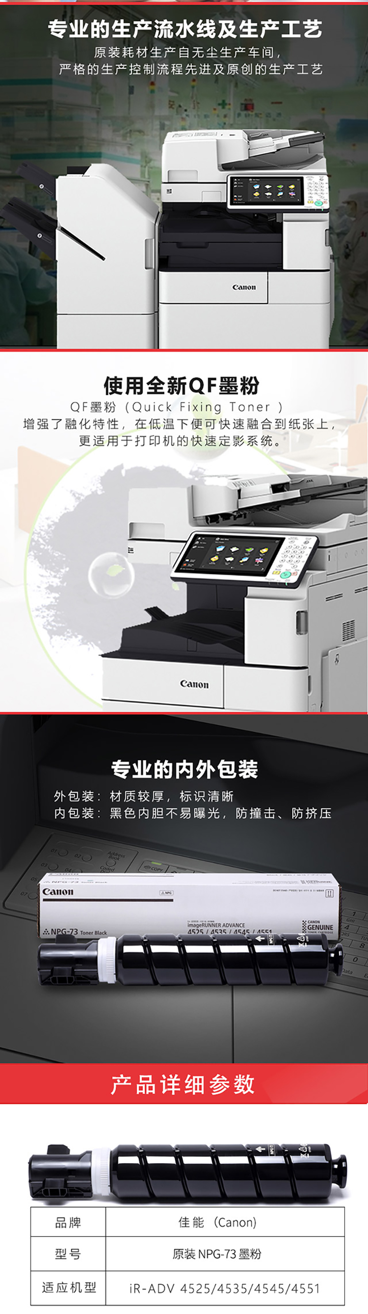 • 商品名稱:佳能 NPG-73 碳粉 一支適用于iR-ADV 4525/4535/4545/4551/4725/4735/4745/4751