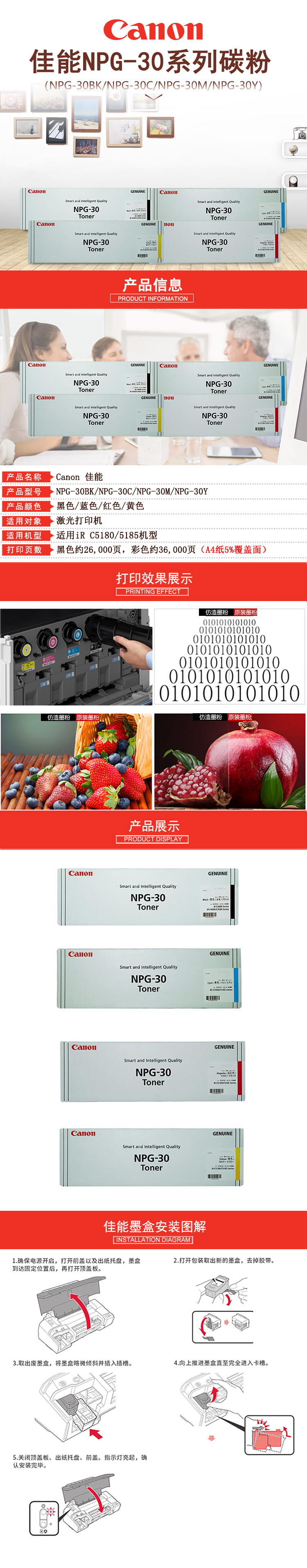 • 商品名稱:佳能 NPG-30 碳粉Y(黃) 一支 適用iR C5180/5185機型