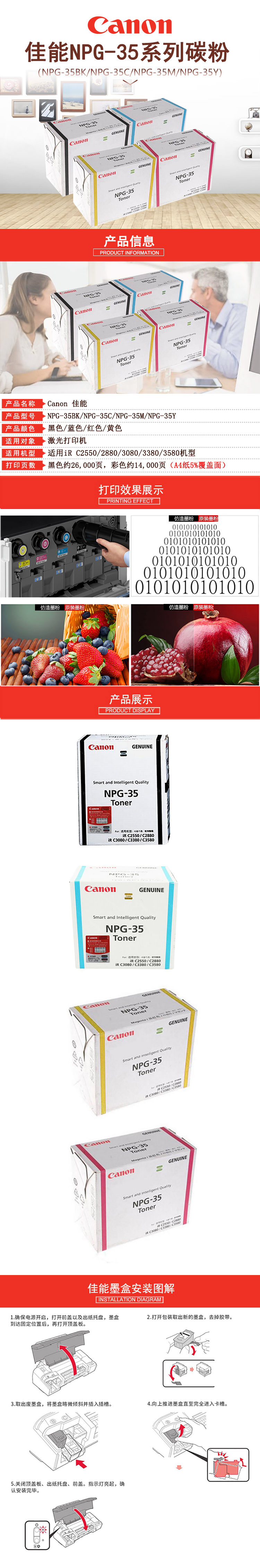 • 商品名稱:佳能 NPG-35 碳粉Y(黃) 一支 適用iR C2550/2880/3080/3380/3580機(jī)型