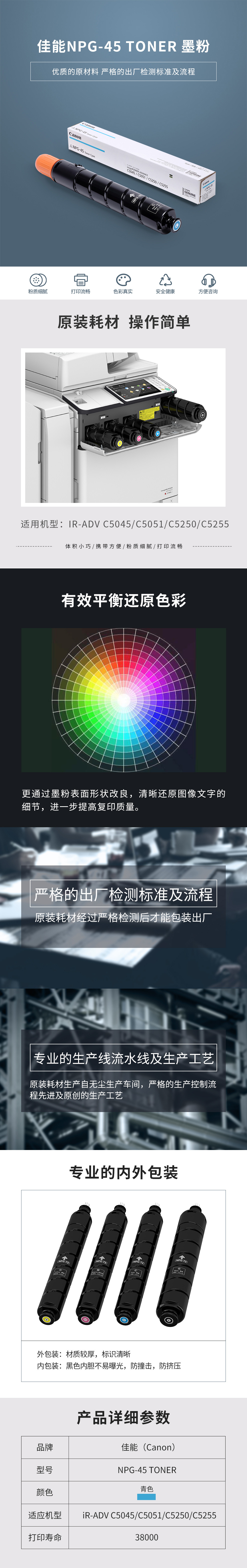 佳能 NPG-45 碳粉C(藍) 一支 適用于iR-ADV C5045/C5051/C5250/C5255