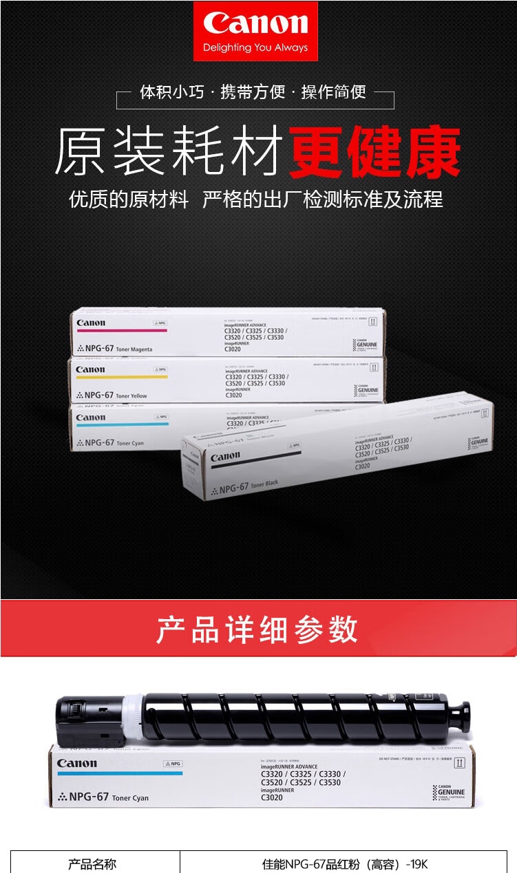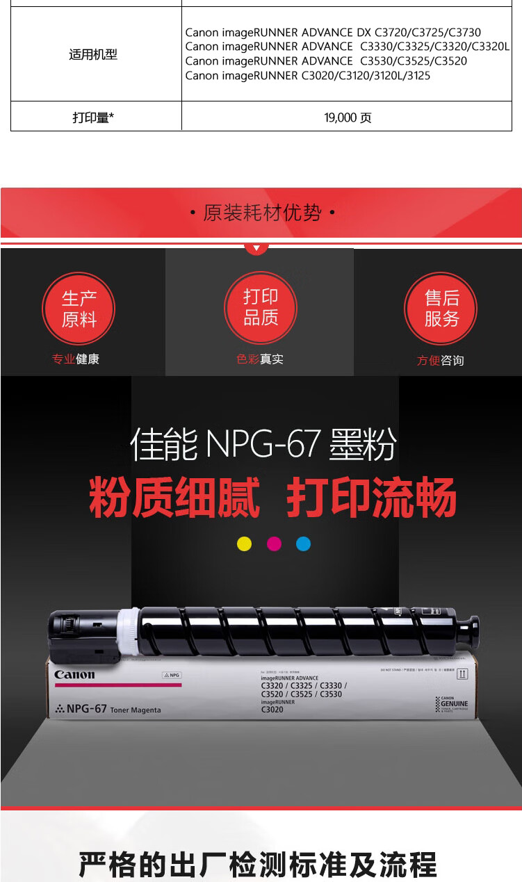 • 商品名稱:佳能 NPG-67 碳粉M(紅) 一支 適用于iR-ADVC3320 C3325 C3330 C3020 C3530 C3525