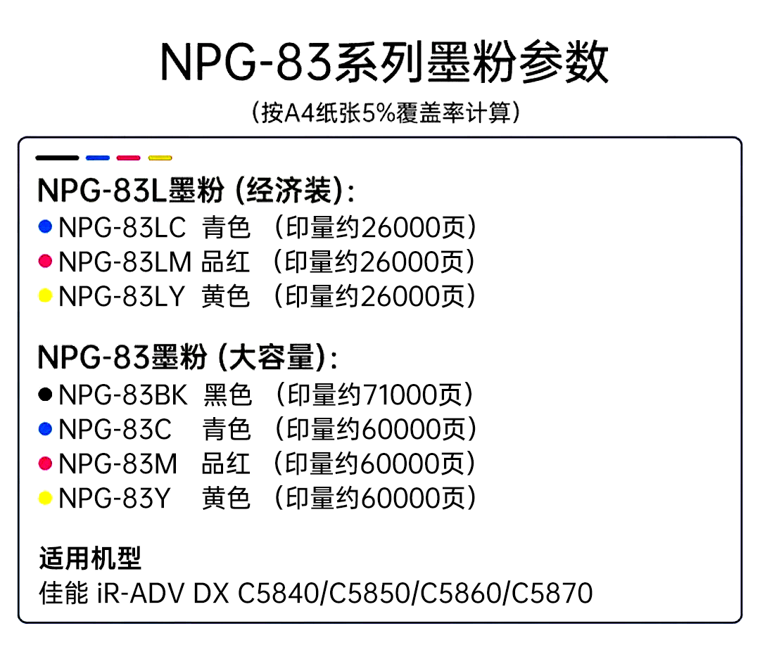 • 商品名稱:佳能 NPG-83碳粉/經(jīng)濟(jì)裝(紅) 一支 適用C5840/5850/5860/5870