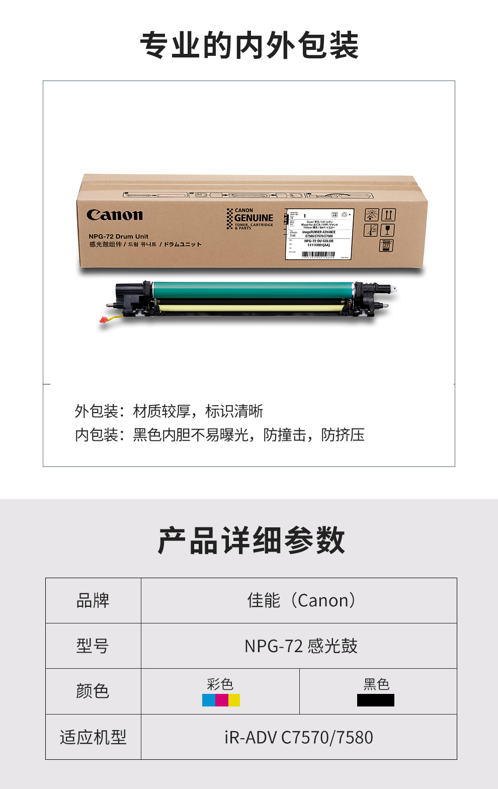 • 商品名稱:佳能 NPG-72 套鼓 Color(彩色) 一支 適用于iR-ADV C7570/7580