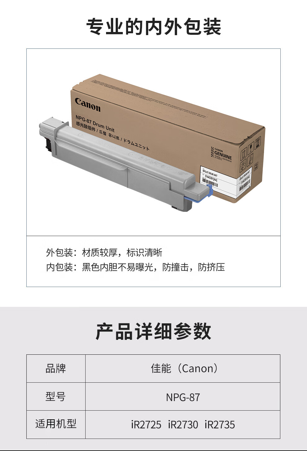 • 商品名稱:佳能 NPG-87套鼓 一支 適用于 iR2725 iR2730 iR2735