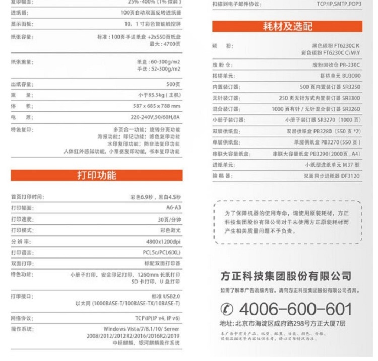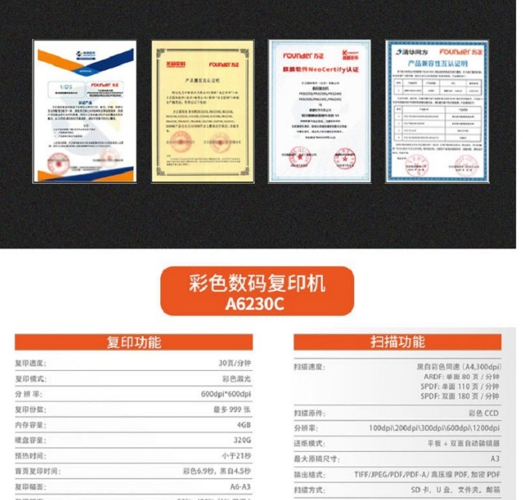 • 商品名稱:方正A6230C A3 彩色激光復印機