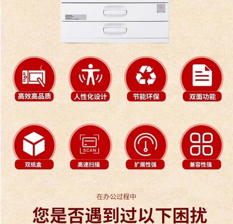 • 涵蓋網(wǎng)絡(luò)功能:復(fù)印/打印/掃描