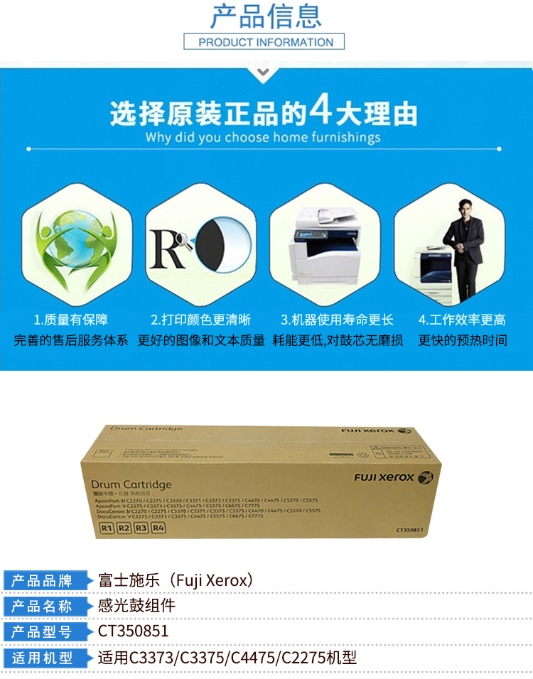 • 商品名稱:富士膠片 CT350851 彩色 感光鼓 一支 適用于 C2275/C3373/C3375/C4475/C5575/C6675/C7775