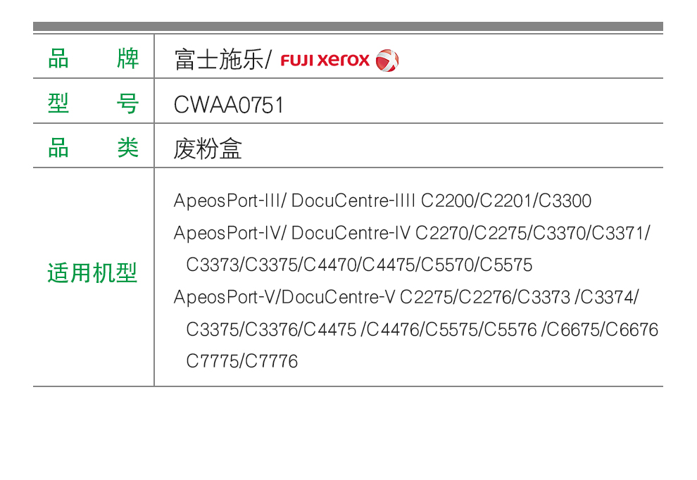 • 商品名稱:富士膠片 CWAA0751 廢粉盒 一支 適用于 C2275/C3373/C3375/C4475/C5575/C6675/C7775