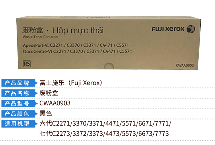 • 商品名稱:富士膠片 CWAA0903 廢粉盒 一支 適用于C2271//C3370/C3371/C4471/C3370/C5571/C6671/C7771/C2273/C3372/C3373/C4473/C5573/C6673/C7773/C3070/C3570/C4570/C5570/C6570/C7070