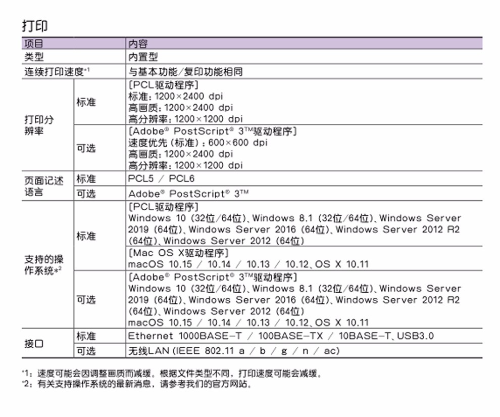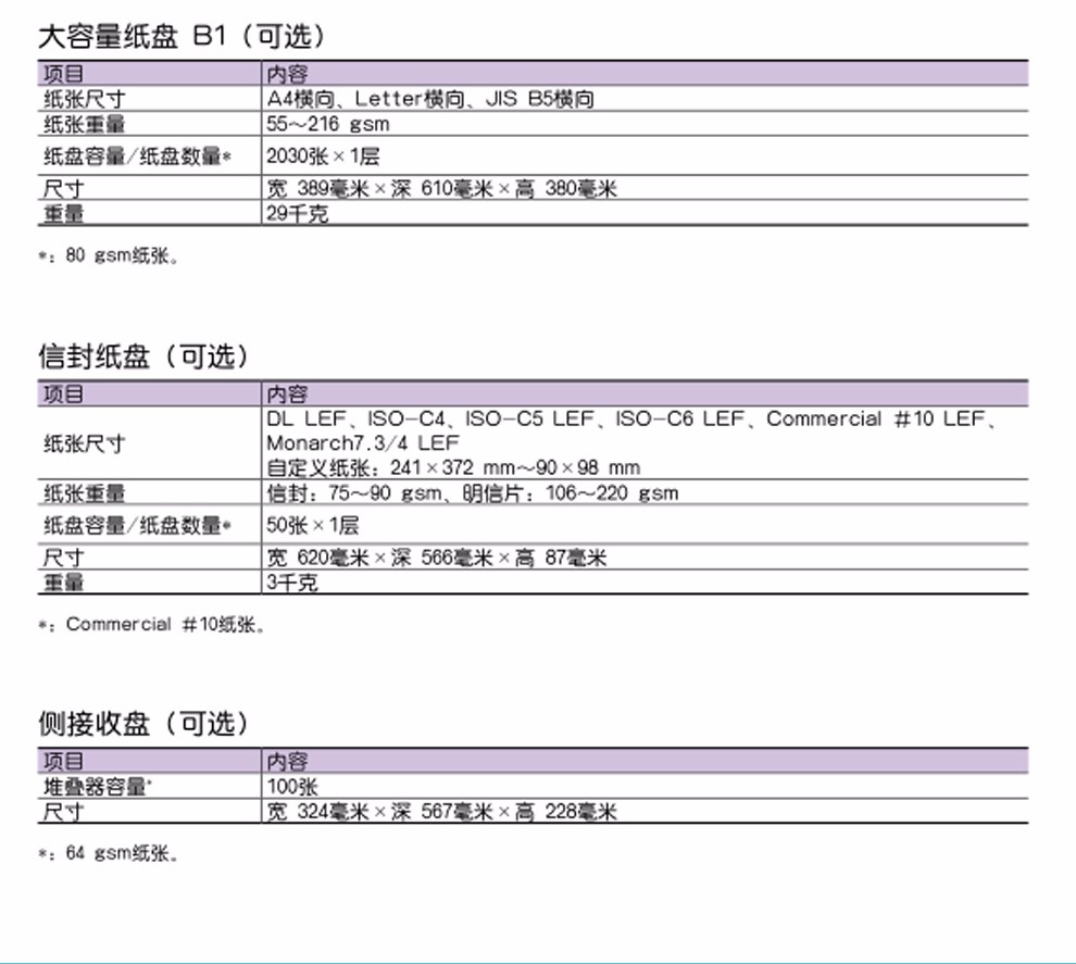 • 連續(xù)打印頁數(shù):A4/JIS B5橫向:55頁/分鐘;A4 / JIS B5:40頁/分鐘;JIS B4:32頁/分鐘;A3:27頁/分鐘