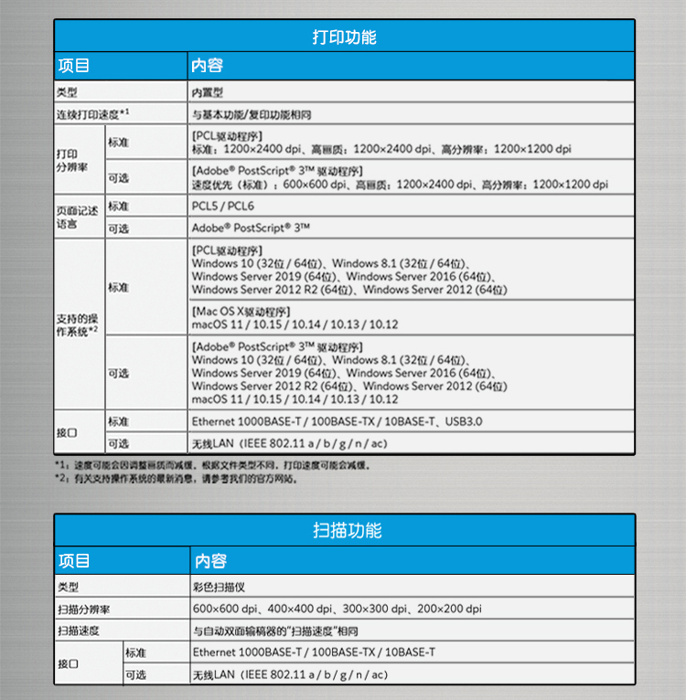 • 掃描速度:80頁(yè)/分鐘