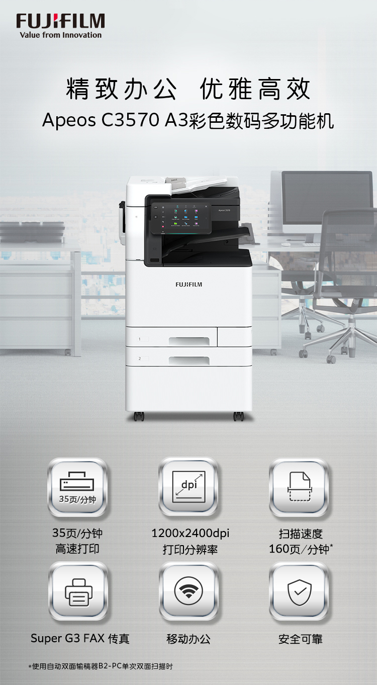 • 商品名稱:富士膠片(FUJIFILM)Apeos C3570 CPS SC 2Tray A3彩色激光復(fù)合復(fù)印機(jī) 含輸稿器+兩紙盒