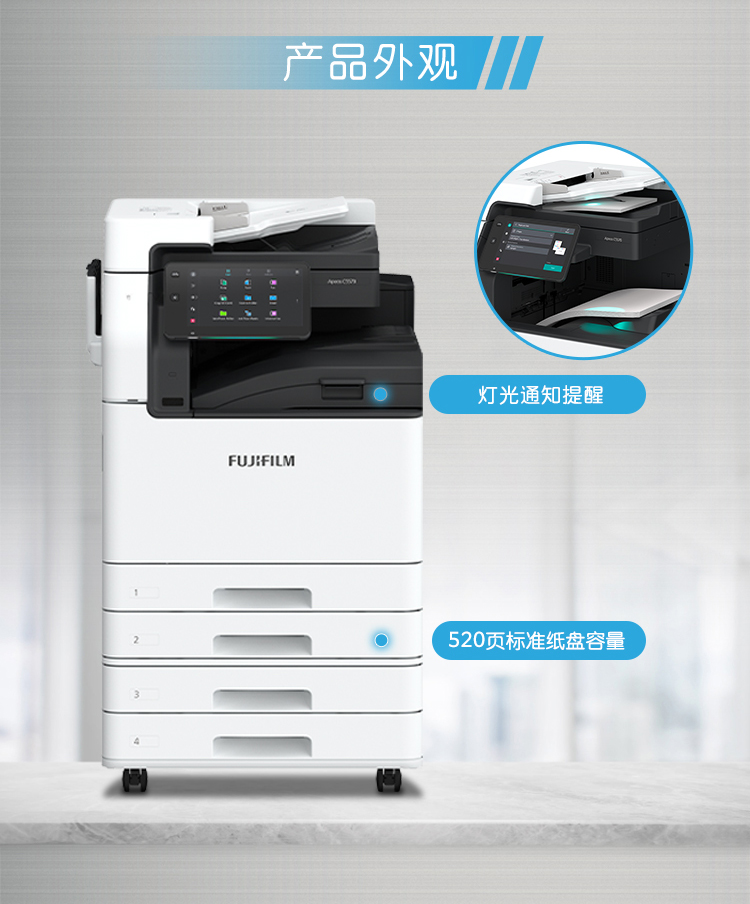 • 商品名稱:富士膠片( FUJIFILM) Apeos C5570 CPS 4Tray A3彩色激光復合復印機 含輸稿器+四紙盒