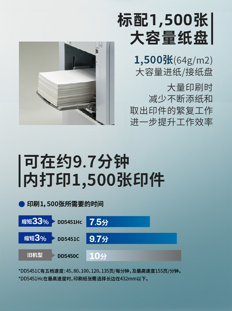 - 印刷速度:45 ~135頁/分鐘(5級可変)、155頁/分鐘(最高速)