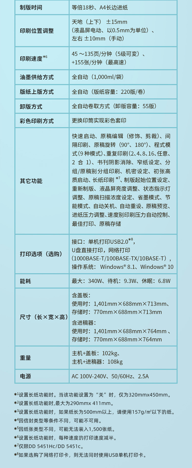 - 商品名稱:理光 DD 5451C 速印機(主機+自動送稿器+網(wǎng)絡打印卡+紙條分頁器+6袋油墨+4卷版紙+工作臺)