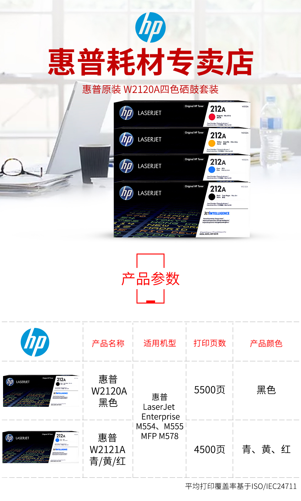 惠普(HP) W2120A(212A) 5500頁 硒鼓 一支 適用于M554 M555 MFP578系列 黑色