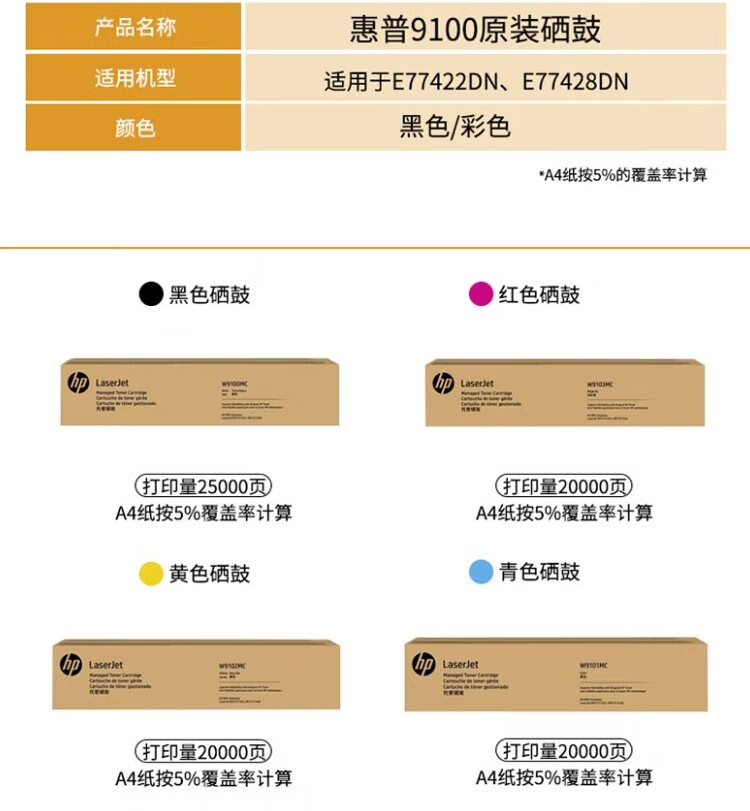 • 商品名稱:惠普(HP) 9100mc硒鼓粉盒 適用E77422、E77428 W9103MC紅色(20000頁)