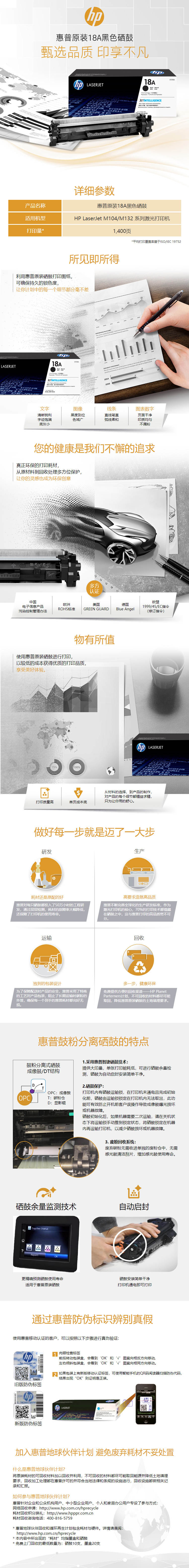 - 商品名稱:惠普(HP) CF218A 18A 1400頁 硒鼓 一支 適用于設備 M104a,M104w,M132a,M132nw,M132fn,M132fp,M132fw等 黑色