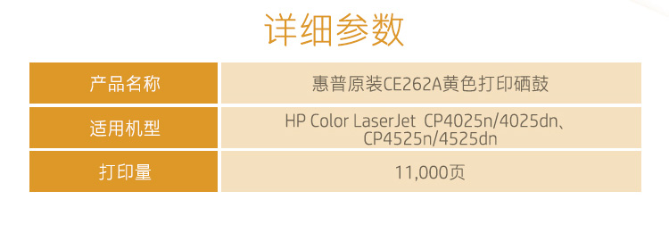• 商品名稱(chēng):惠普(HP) CE262A 打印量11000頁(yè) 硒鼓 一支 適用M4025/M4225 黃色