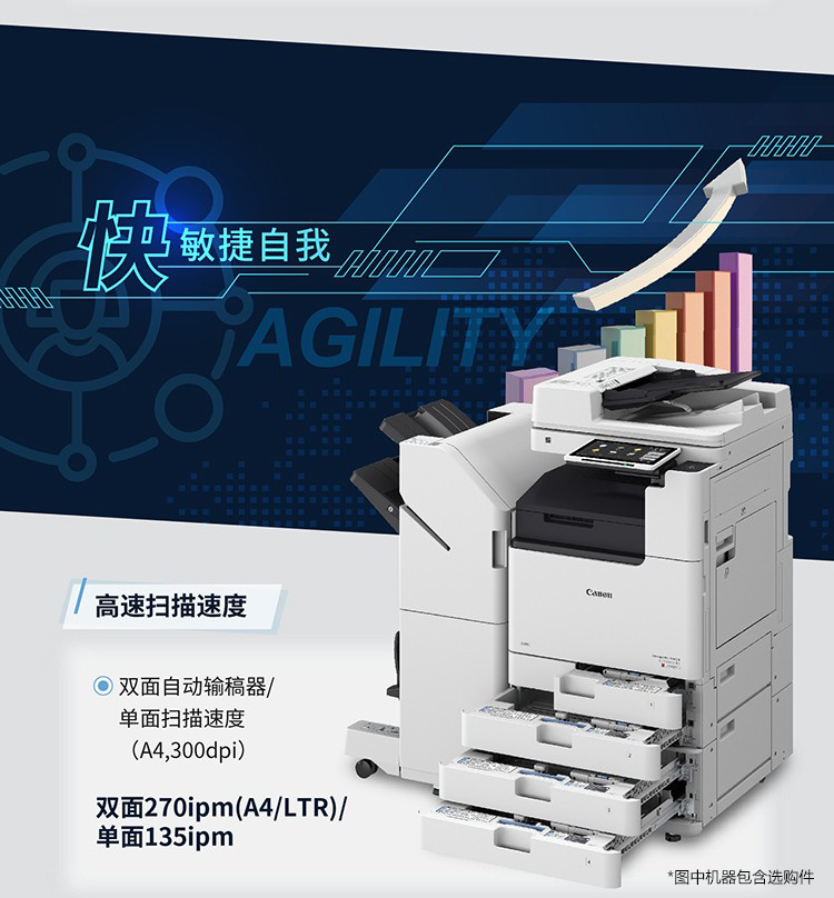 - 商品名稱(chēng):佳能(CANON)iR-ADV DX C3835 A3彩色激光數(shù)碼復(fù)合機(jī)含輸稿器+工作臺(tái)+內(nèi)置裝訂(雙面打印復(fù)印掃描無(wú)線(xiàn))