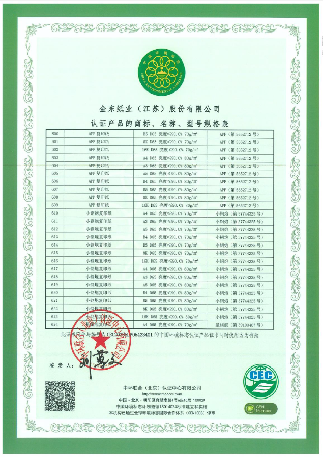 • 環(huán)境標(biāo)志產(chǎn)品認(rèn)證證書(shū)編號(hào):CEC2023ELP05423401