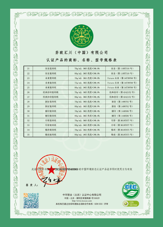 • 環(huán)境標(biāo)志產(chǎn)品認(rèn)證證書編號(hào):CEC2018ELP05400969