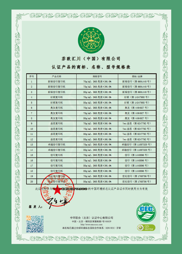 • 環(huán)境標(biāo)志產(chǎn)品認(rèn)證證書編號(hào):CEC2018ELP05400969