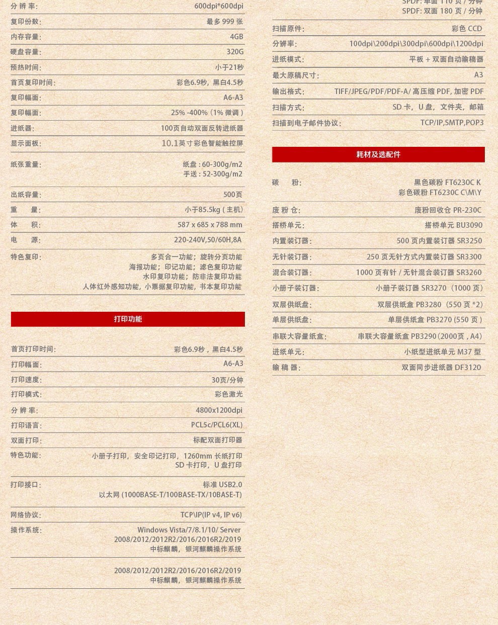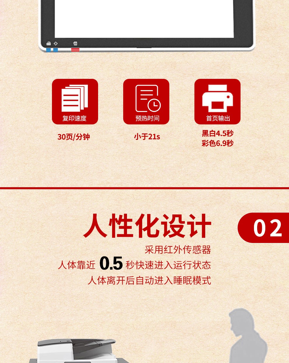 • A4復(fù)印速度(彩色):30頁/分鐘