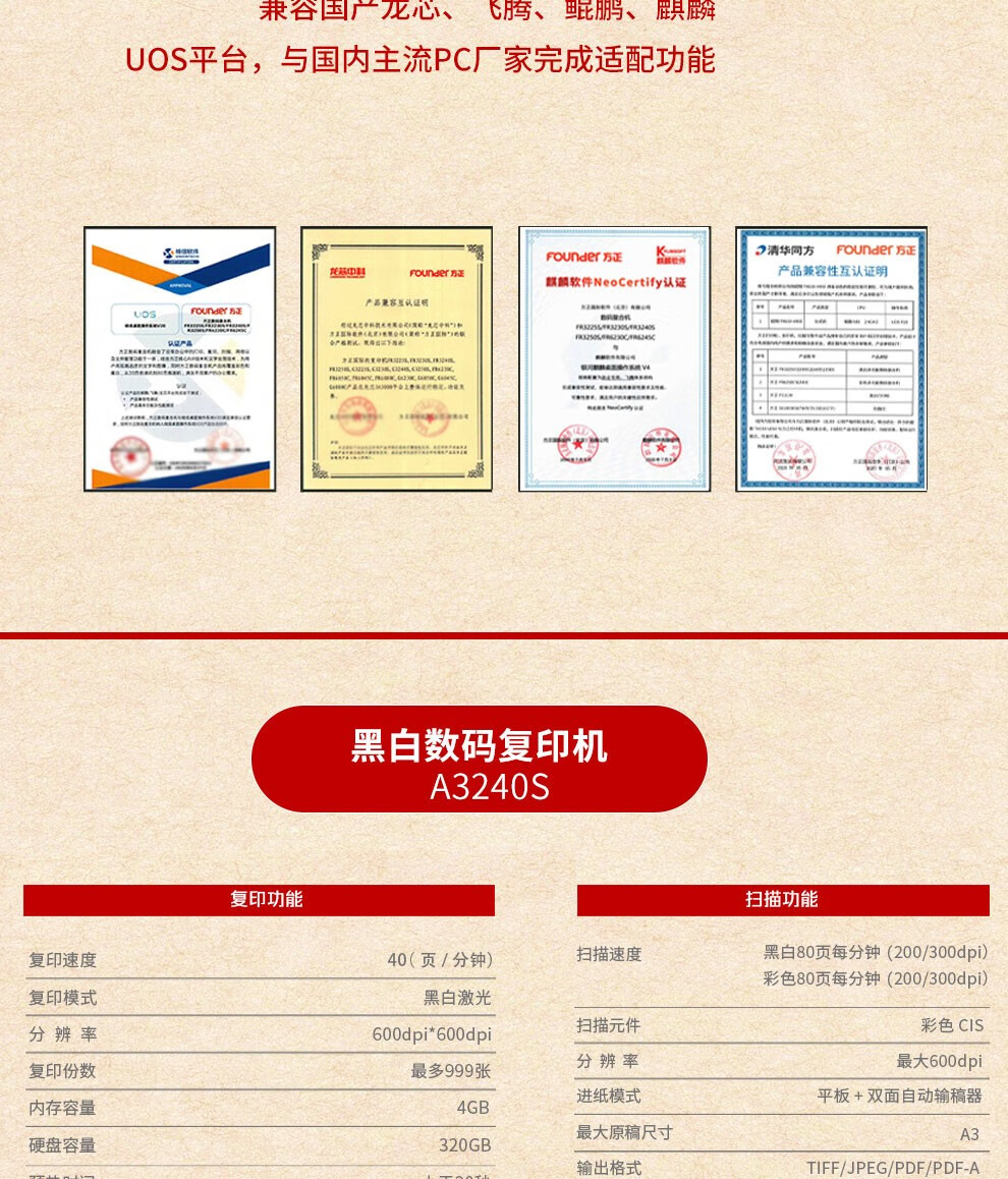 方正(Founder)A3240S國(guó)產(chǎn)多功能復(fù)印機(jī)A3黑白激光復(fù)合機(jī) 主機(jī)+自動(dòng)進(jìn)稿器+四紙盒