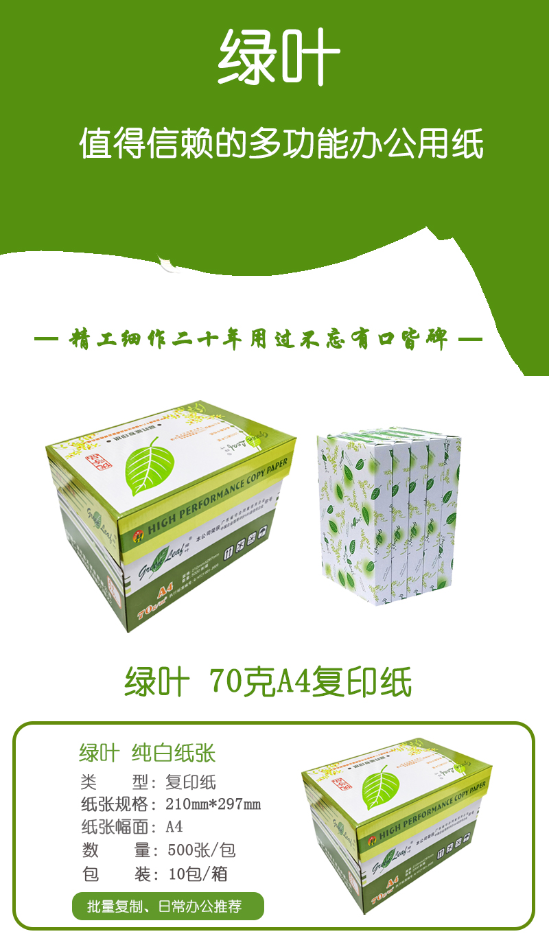 綠葉 70克A4 優(yōu)等品復(fù)印紙 10包/箱 500張/包(單價(jià) 元/箱) 廠家直銷(xiāo)