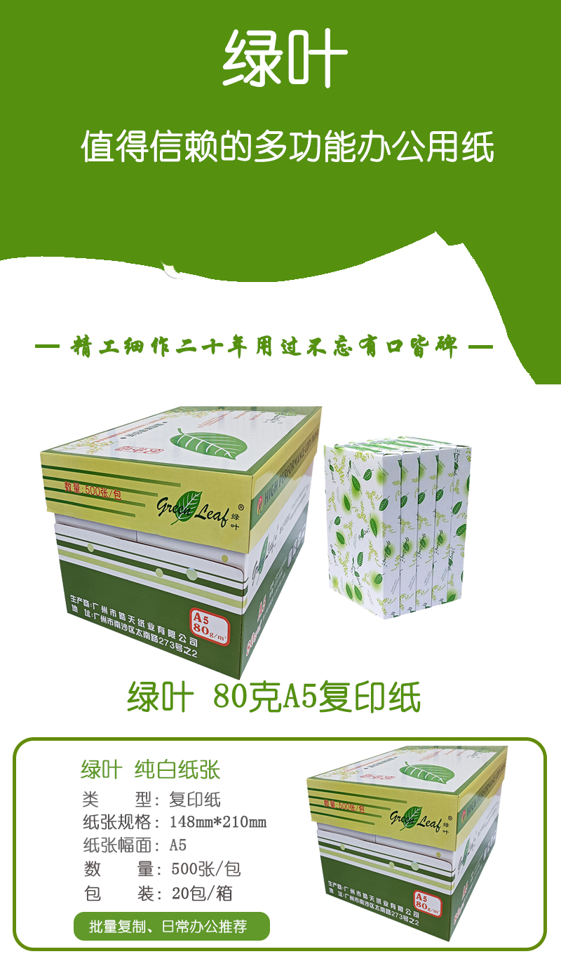 綠葉 80克A5 優(yōu)等品復(fù)印紙 20包/箱 500張/包(單價(jià) 元/箱) 廠家直銷(xiāo))
