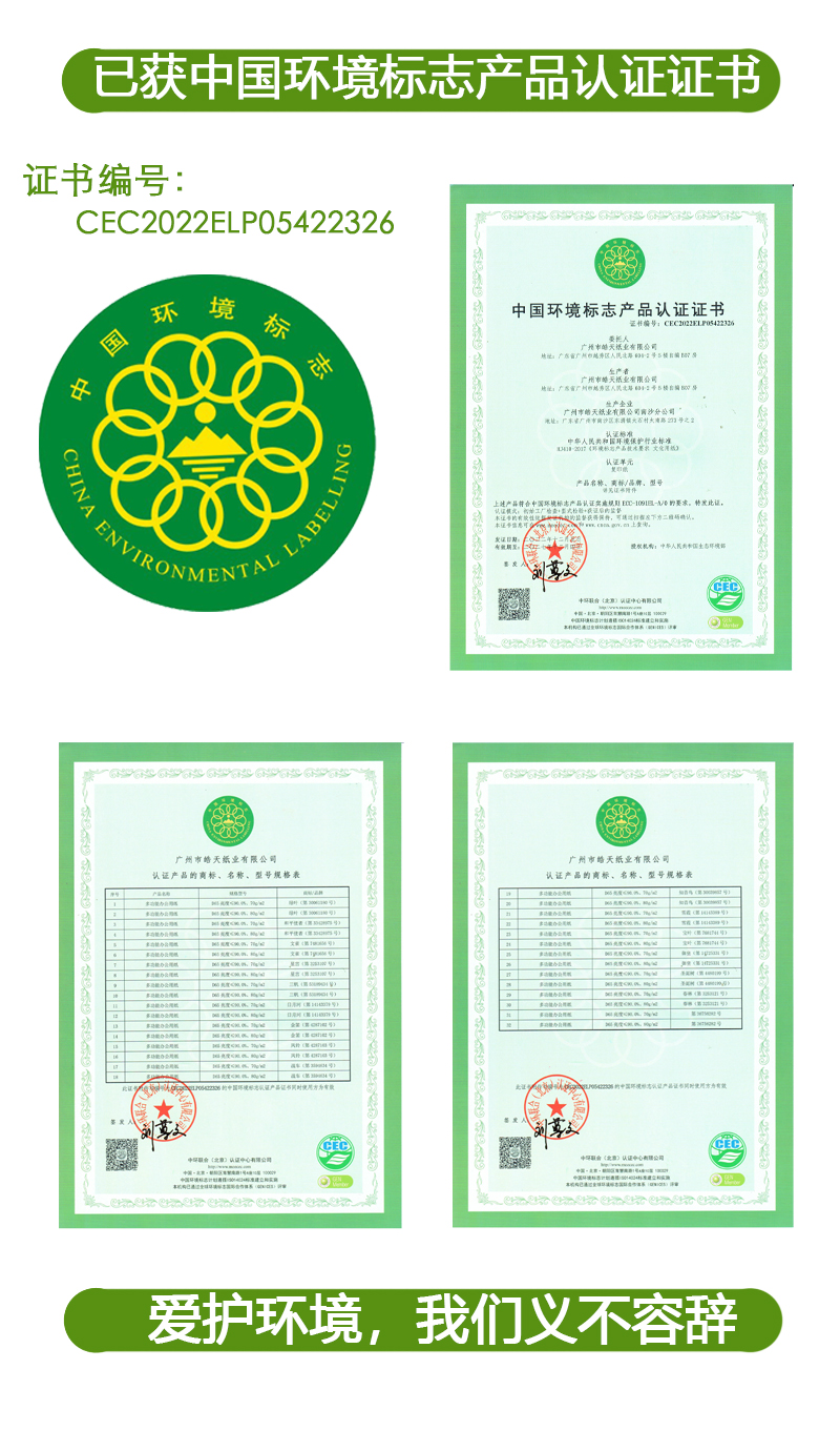 • 環(huán)境標(biāo)志產(chǎn)品認(rèn)證證書(shū)編號(hào):CEC2022ELP05422326