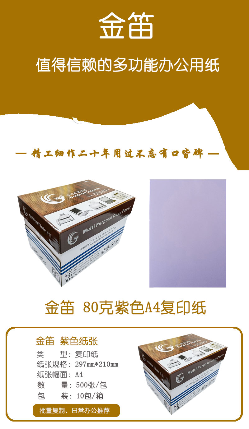 金笛 80克紫色A4 優(yōu)等品彩色復(fù)印紙 500張/包 10包/箱(單價 元/箱)廠家直銷