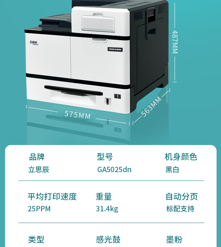 • 商品名稱:立思辰(LANXUM) A3激光黑白打印機GA5025dn、A3幅面、黑白激光、雙面打印、網(wǎng)絡(luò)打印