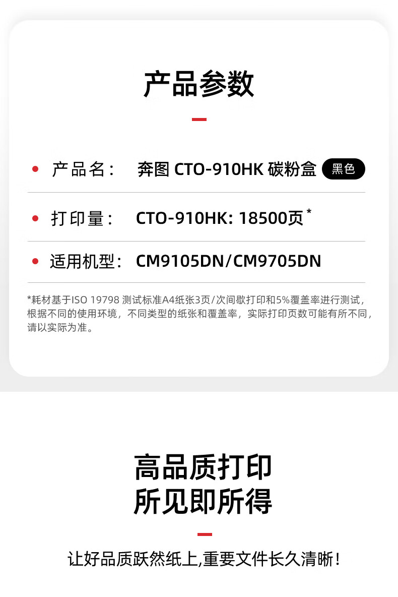 • 商品名稱:奔圖(PANTUM)CTO-910HK原裝黑色粉盒 適用CM9105DN/CM9705DN打印機(jī)