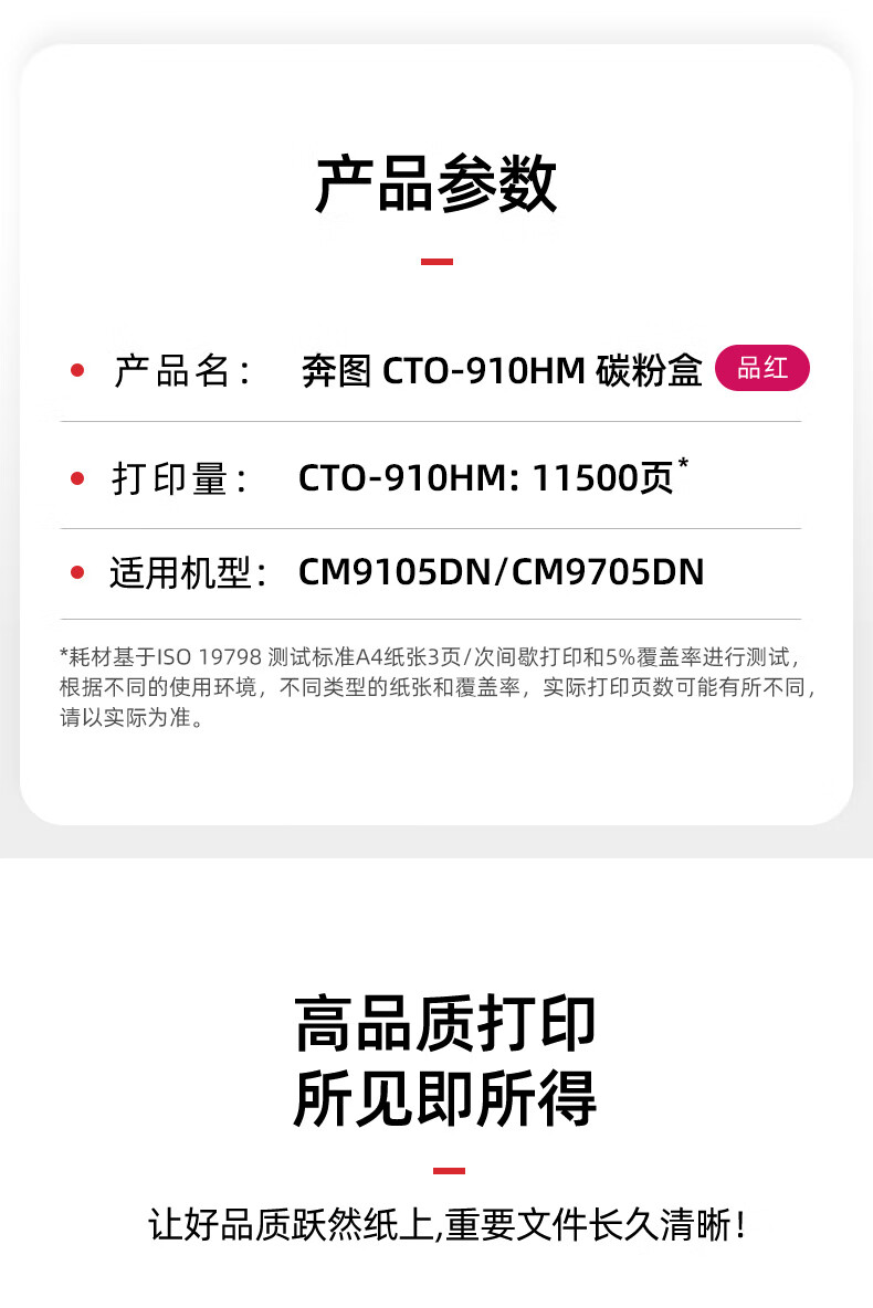• 商品名稱:奔圖(PANTUM)CTO-910HM原裝紅色粉盒 適用CM9105DN/CM9705DN打印機(jī)