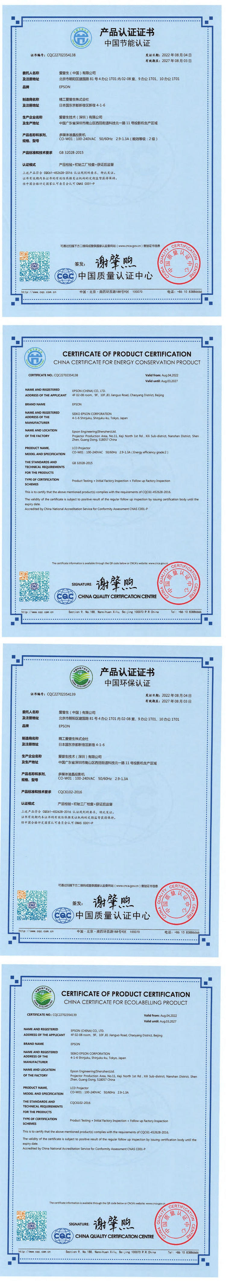 • 節(jié)能證書編號:CQC22702354138