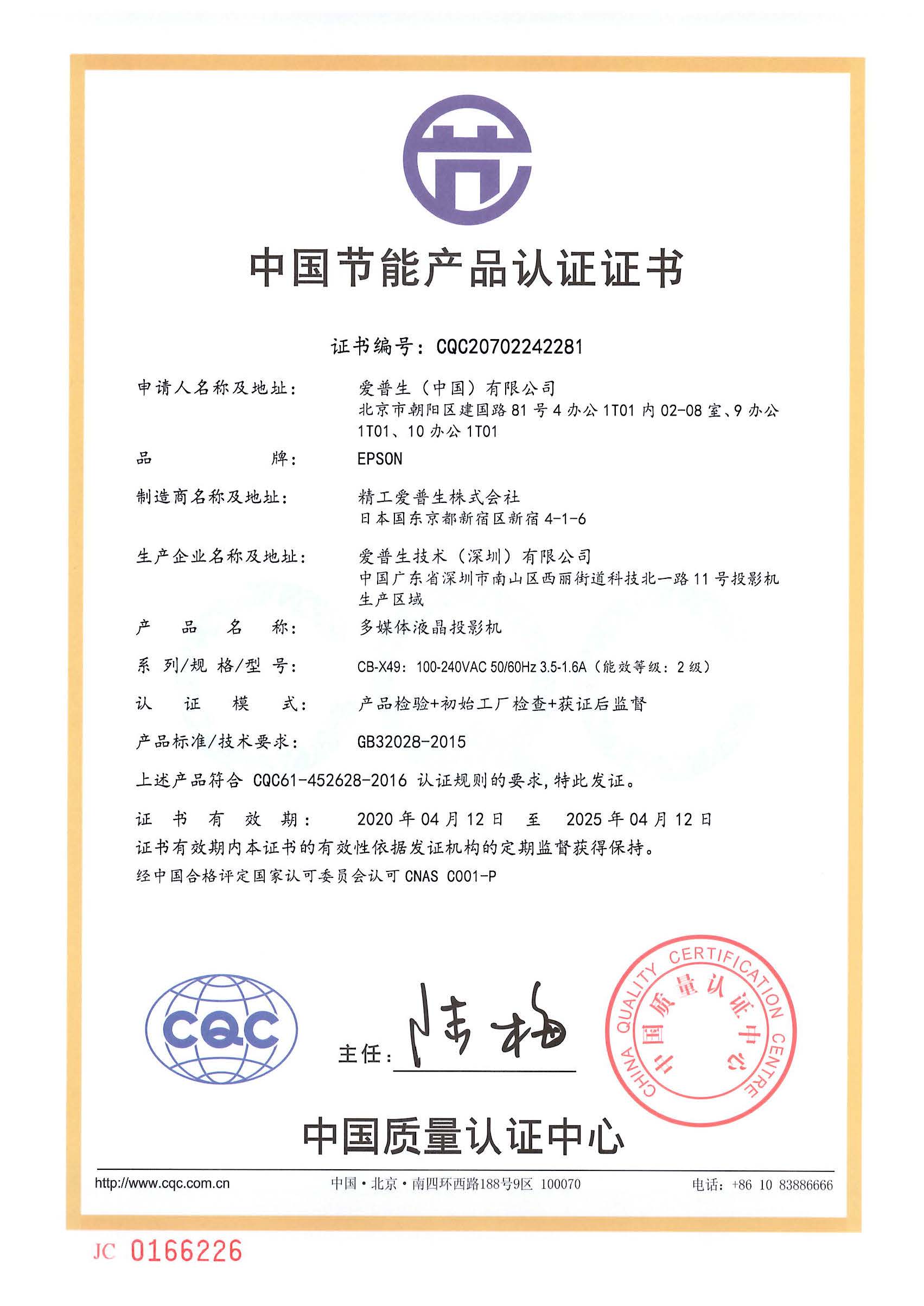• 節(jié)能證書編號(hào):