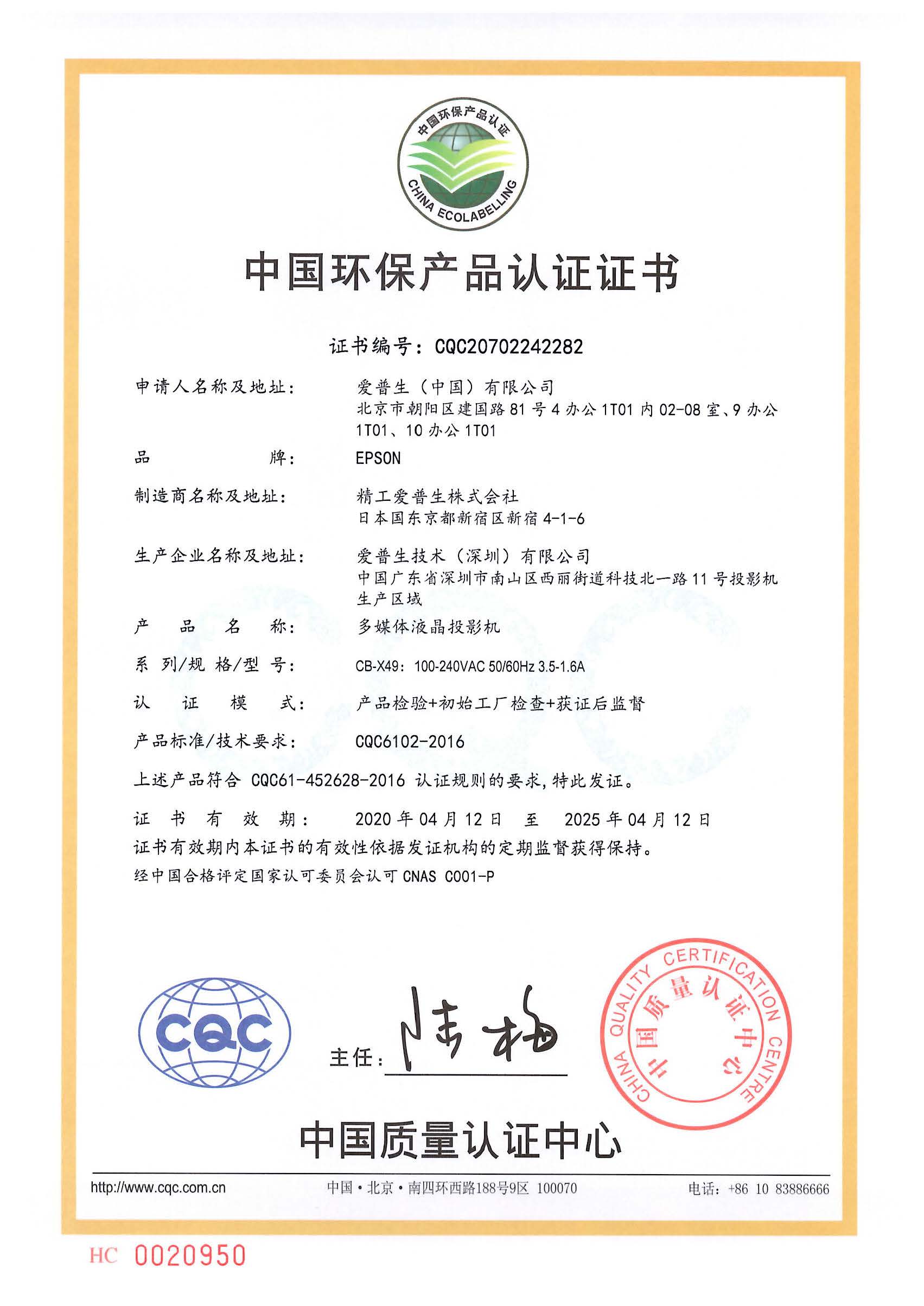 • 環(huán)境標(biāo)志證書編號(hào):