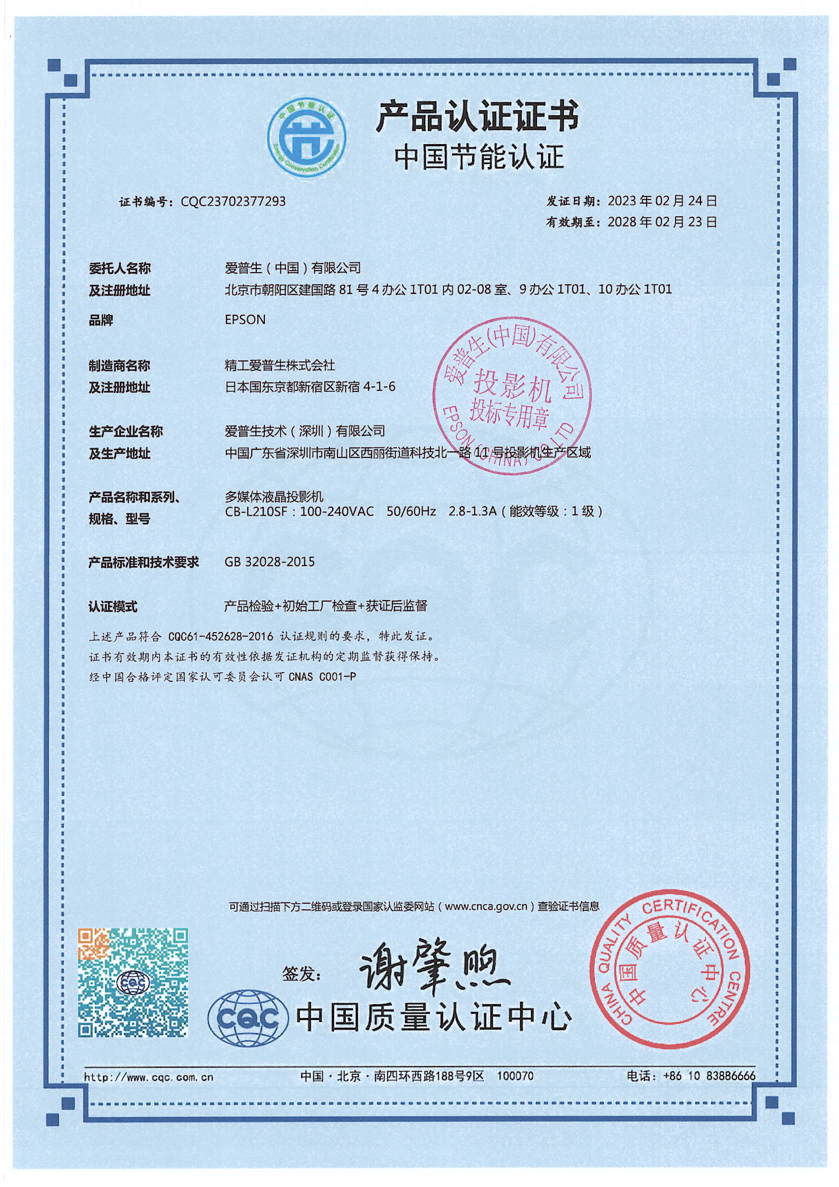 • 節(jié)能證書編號:CQC23702377293