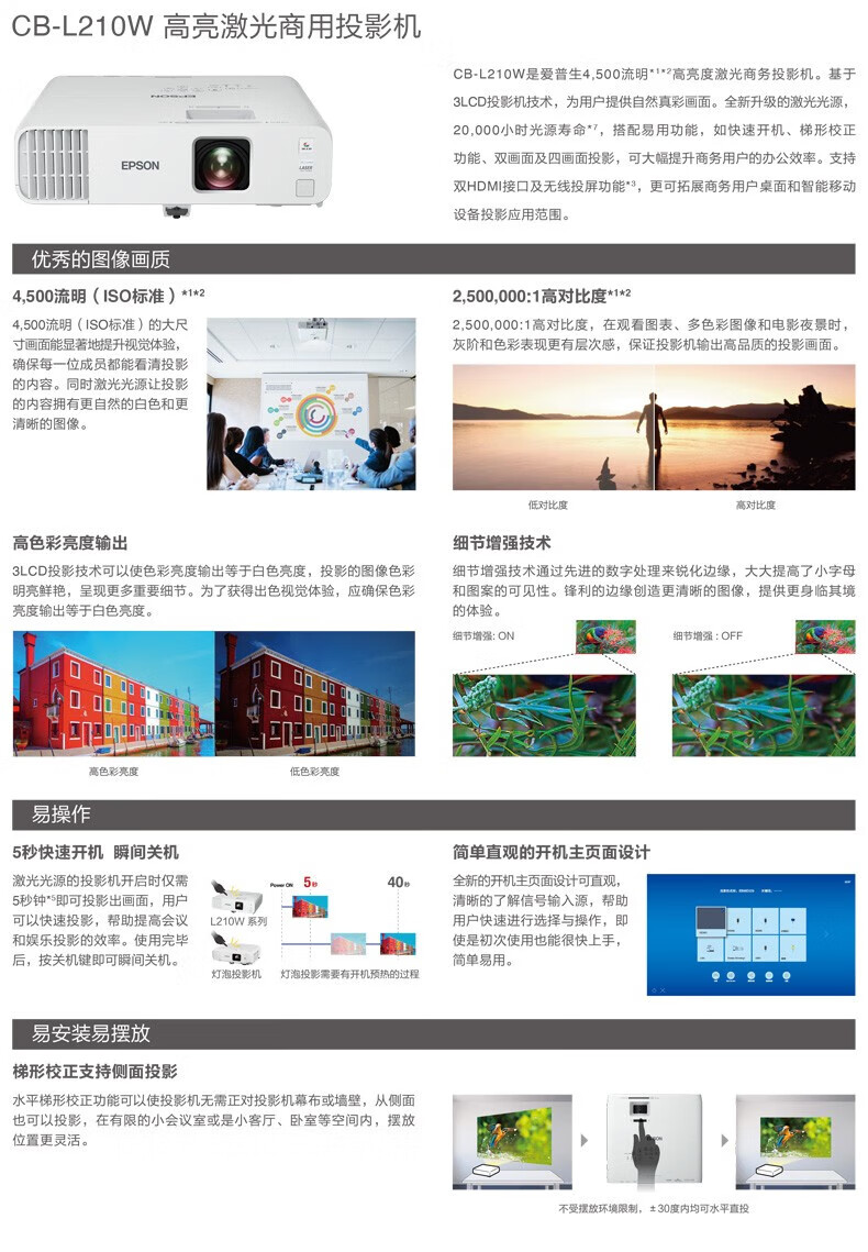• 商品名稱:愛普生 CB-L210W 投影儀