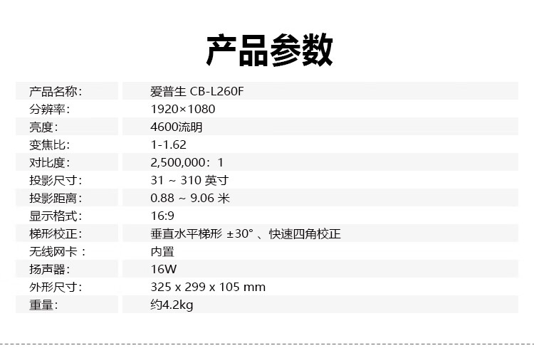 • 商品名稱:愛普生 CB-L260F 投影儀