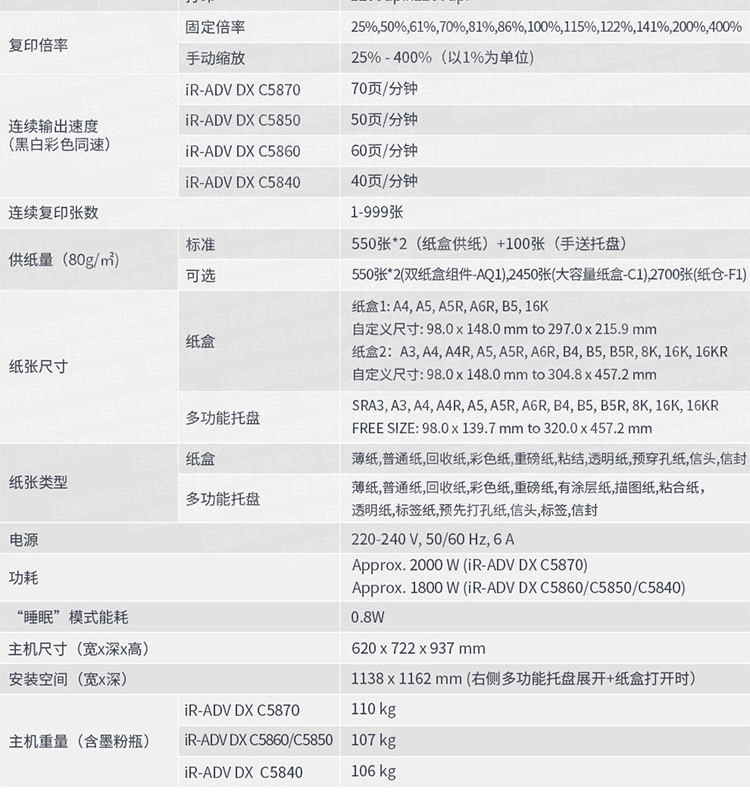 • 商品名稱:佳能(Canon)iR ADV DX C5850 A3彩色數(shù)碼復合機含工作臺+內置裝訂(雙面打印復印掃描無線)