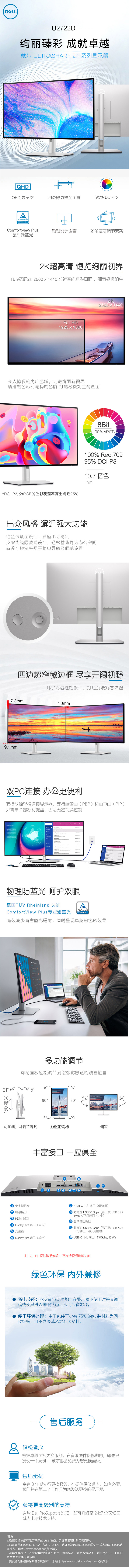 • 商品名稱:戴爾/Dell U2722D 2K全高清27寸液晶顯示器