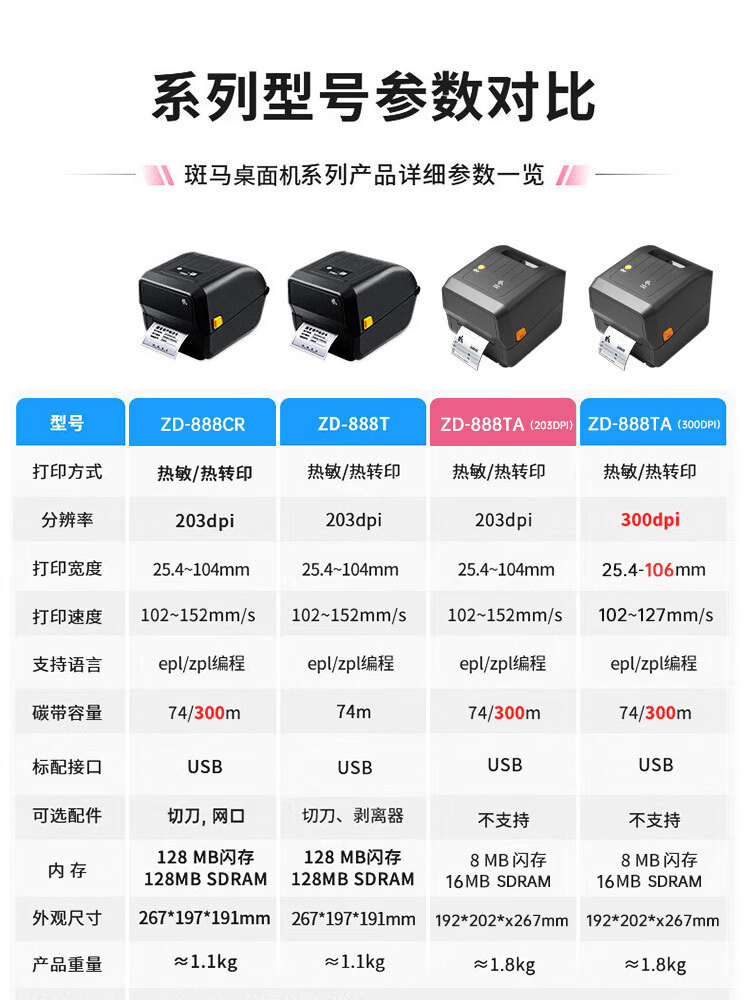 • 商品名稱:斑馬(ZEBRA) ZD888TA 300dpi熱敏標簽條碼打印機