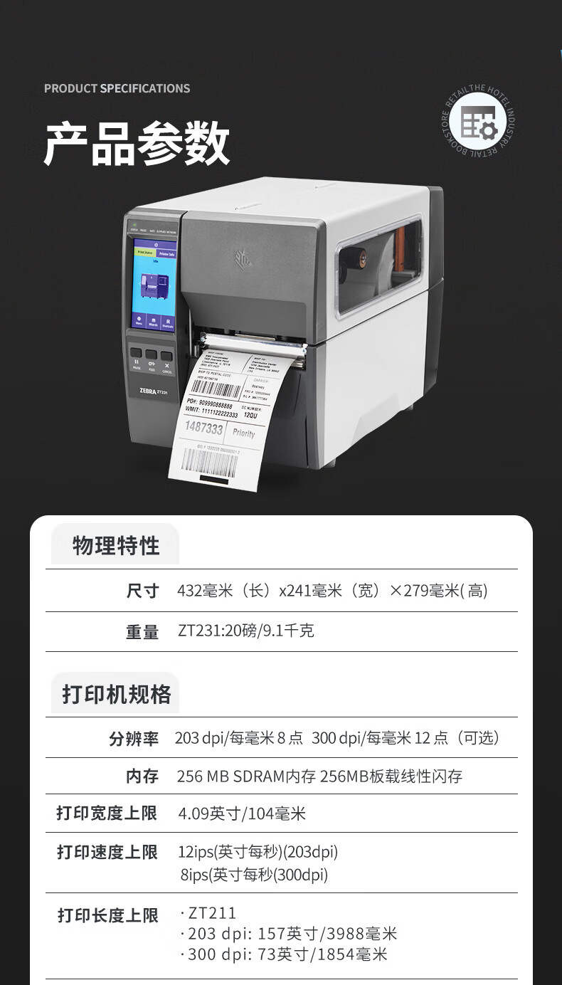 • 商品名稱:斑馬(ZEBRA)ZT231 305mm/s 203dpi 工業(yè)級熱敏標簽條碼打印機